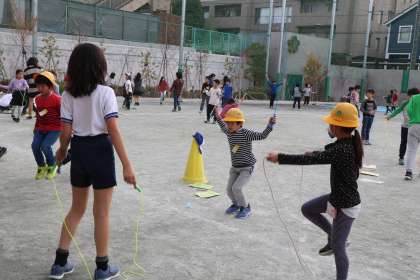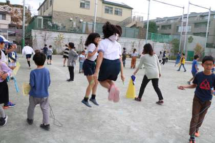 6年生は1年生の数を応えんしながら数えてくれます。合間に、2人飛びを楽しむ姿も。