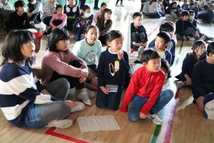 縦割り班ごとに、上級生と下級生みんなで頭を寄せ合って話し合ったり、上級生とおしゃべりしたり楽しいひとときでした。
