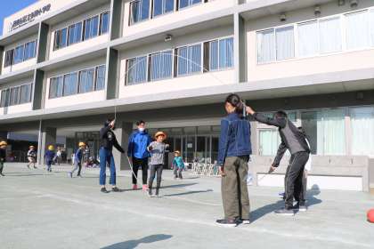 中休みの校庭の様子です。ぽかぽか陽気の中、元気に外遊びを楽しむ1356年生です。6年生のダブルダッチに挑戦する1年生もいました。異学年いっしょに遊ぶことが自然にできる丘の子が嬉しいです。