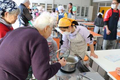 今日は5年生のお米の授業がありました。5月の田植えから、稲刈り、脱穀、精米、米作りについて総合・社会で学習を深めました。自分たちで育てた米と買ったお米を足して、実際にご飯を炊きました。電気釜ではなく文化釜でガスの火を調節しながら炊きました。「いいにおい」「川場を思い出すね」と言いながら釜を眺めている様子がかわいい5年生です。