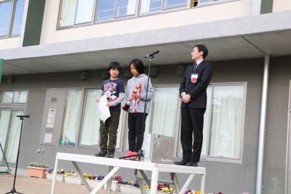 表彰の写真は、サッカー6年生チームの二人、優勝という輝かしい成績でした。