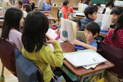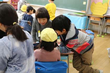 2/12 幼小交流−1 公開日 2019/02/12 更新日 2019/02/12 校長室より 今日は幼稚園・保育園のお友達が来校し、1年生と交流しました。1年生は、教科書を読んであげたり、いすに座らせてあげたり、小学校のことをいろいろ教えてあげました。教科書を幼稚園の子に見やすい向きにしながら読んだり、目線の高さを合わせるために膝をかがめてお話を聞いてあげたり、優しい心遣いが嬉しかったです。 いいね(0) 学校行事 1年 2年 3年 4年 5年 6年 委員会・クラブ活動 地域連携
