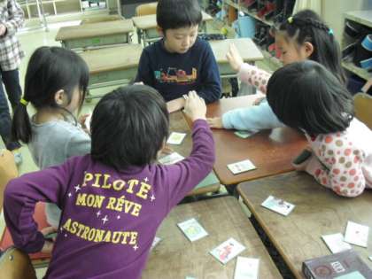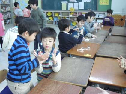 1月18日(火)には、こま・はねつき・かるたとり・お手玉・おはじき・けん玉・あやとりの7つのコーナーに分かれて、2年生に技やコツを教えてもらいました。とても温かな1時間でした。2年生のお兄さん・お姉さんにやさしく教えてもらって喜ぶ子、名人目指して頑張るぞと練習に励む子、1年後は自分もかっこいい2年生になれるかなと今から楽しみにする子とそれぞれ思いをもつことができました。2年生のみなさん、ありがとう!