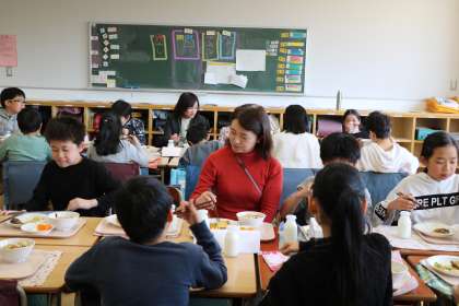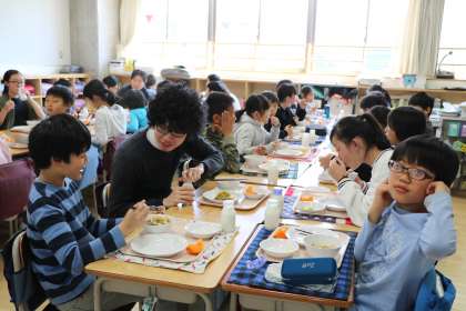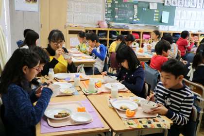 4年生がお世話になった先生方をご招待して、いっしょに給食を食べました。