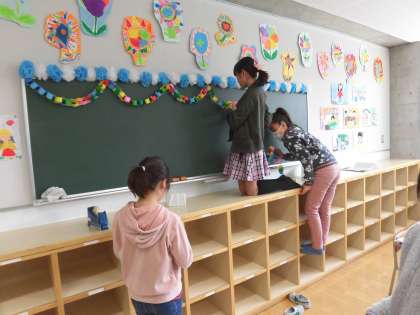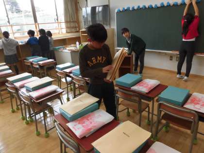 4月8日の始業式・入学式の準備に取り組んでいる6年生です。