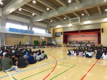 体育館では多聞小最高学年の6年生が手際よく片付けをすすめていました。