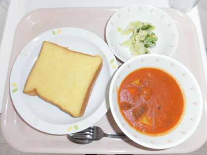 令和元年5月15日(水) 公開日 2019/05/16 更新日 2019/05/16 給食 <献立> 豆乳のフレンチトースト 牛乳 トマトシチュー ブロッコリーのサラダ <主な食材産地> たまねぎ 佐賀 にんじん 徳島 じゃがいも 鹿児島 パセリ 静岡 キャベツ 茨城 ブロッコリー 長崎 りんご 青森 豚肉 青森 いいね(0)