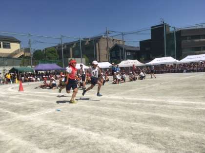 高学年リレー、バトンパスがさすが5,6年生。美しい!