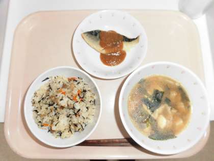 令和元年5月29日(水) 公開日 2019/05/30 更新日 2019/05/30 給食 <献立> ひじきごはん 牛乳 魚のごまだれかけ みそ汁 <主な食材産地> にんじん 徳島 ごぼう 青森 じゃがいも 長崎 だいこん 千葉 ねぎ 千葉 とりにく 青森 わかめ 韓国 米 山形 さば ノルウェー いいね(0)