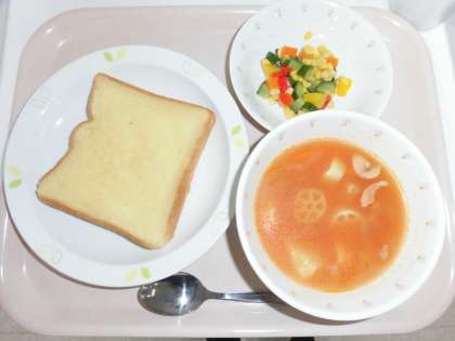 令和元年6月7日(金) 公開日 2019/06/07 更新日 2019/06/07 給食 <献立> ハニーレモントースト 牛乳 ミネストローネ トロピカルサラダ <主な食材産地> たまねぎ 佐賀 にんじん 茨城 セロリ 長野 じゃがいも 千葉 きゅうり 群馬 赤ピーマン 宮城 黄ピーマン 宮城 豚肉 青森 いいね(0)