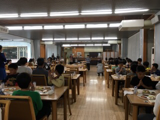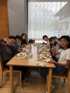 宿舎ふじやまの食堂で食べる最後の食事です。もりもり食べ、村めぐりへ出発します。