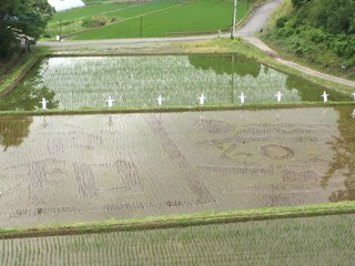 田園プラザまでの橋下に、田んぼアートの準備段階がありました。