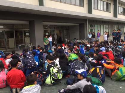 5年生が川場から無事に元気に帰校しました。たくさんの保護者の方々や教職員に迎えてもらいました。