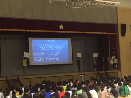 7/11 丘の子さわやかタイム 公開日 2019/07/11 更新日 2019/07/11 校長室より 集会委員さんによるオリパラクイズ集会でした。 先日のオリパラデイに続き、今週はオリンピックパラリンピック週間です! いいね(0) 学校行事 1年 2年 3年 4年 5年 6年 委員会・クラブ活動 地域連携