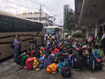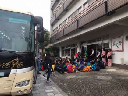 お世話になる宿の方々に挨拶して、部屋に入り避難訓練します。