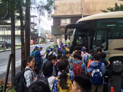 切り込み湖、刈り込み湖へのハイキングに向けて、宿を出発します。5分前行動で予定より早く出れます!