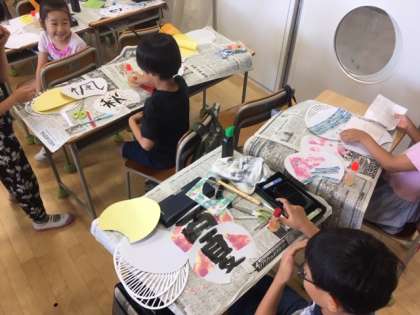 「キンボール」「ロープワーク」「うちわで習字アート」