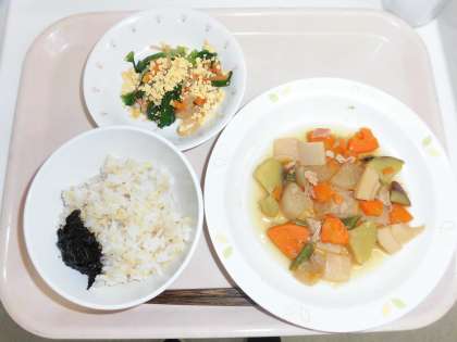令和元年9月19日(木) 公開日 2019/09/20 更新日 2019/09/20 給食 <献立> 玄米ごはん 牛乳 のりの佃煮 野菜と鶏肉のべっこう煮 千草あえ <主な食材産地> 大根 北海道 にんじん 北海道 さつまいも 茨城 サヤインゲン 千葉 鶏肉 青森 鶏卵 群馬 米 山形 いいね(0)
