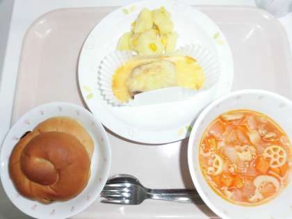 令和元年9月30日(月) 公開日 2019/10/01 更新日 2019/10/01 給食 <献立> ぶどうパン 牛乳 鶏肉のチーズ焼き ミネストローネ コーンポテト <主な食材産地> しょうが 高知 じゃがいも 北海道 たまねぎ 北海道 にんじん 北海道 セロリ 長野 鶏肉 青森 いいね(0)