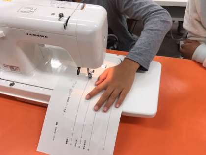 5年生、はじめてのミシン。すごくやりたい気持ちが伝わります。素敵な作品につながる気がします!