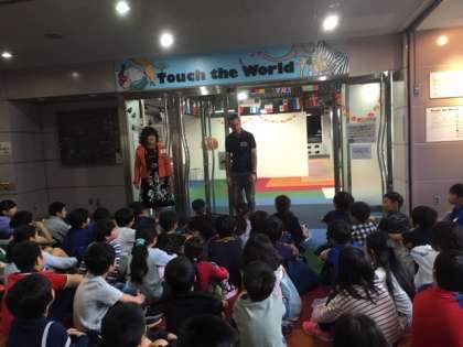 Touch the Worldてプロジェクションマッピングを見て感動する4年生です。