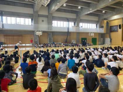 出場種目の紹介を六年生がし、それを応援しようという下級生のあたたかな気持ちが融合した壮行会で、体育館中に、頑張っての拍手が響きわたりました。