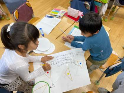 11/8_研究授業 公開日 2019/11/09 更新日 2019/11/09 校長室より 昨日もより分かる、より楽しい授業の工夫に向け、3年3組で算数の研究授業を行いました。 グループごと、色棒で様々な三角形を作り、気付いたことなど話し合いを進め、発表しました。 いいね(0) 学校行事 1年 2年 3年 4年 5年 6年 委員会・クラブ活動 地域連携