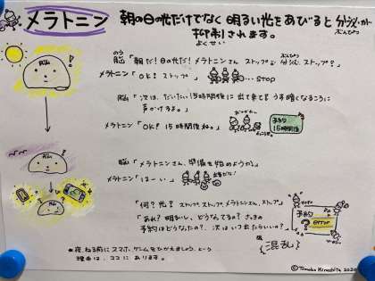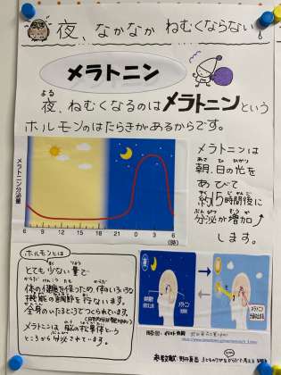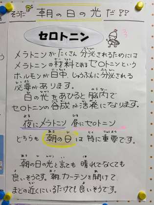 今日は保健の先生から、「朝の光を浴びると、いいことがありますよ!」というお知らせです。できることから、やってみましょう。