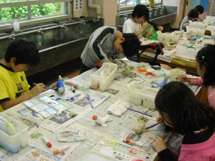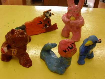 「ホームランを打ったワニ」「キーパーをしているサル」など、スポーツで活躍をしている動物の姿を、粘土で作りました。