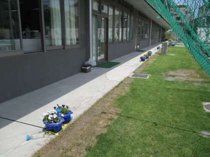 とてもお天気がよく、学校再開へ向けての先生たちの気持ちが表れているようでした。
