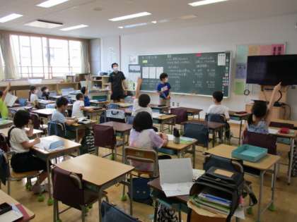 分散登校3週目です。今日は週末に降り続いた雨もあがり、おひさまが子どもたちを優しく迎えていました。