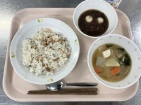わかめごはんおにぎり・ワンタンスープ・牛乳