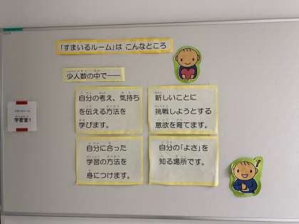 すまいるルームの学習も始まっています。子どもの気持ちを尊重しながら、スモールステップで学習を進めています。信頼関係を丁寧に築きあげ、こころとこころを繋ぎ合わせることを大切にしています。