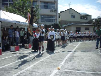 5・6年生全員による鼓笛隊を先頭に、各学年が行進で入場します。