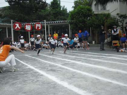 「かけっこ」は、1年生は40m、2年生は50mを走ります。まっすぐ前を見て、全員最後まで走りきりました。