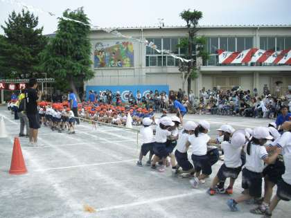 得点のある最後の競技は、全校競技「丘の子綱引き」です。低中高の3試合行います。最終的な勝利に向けて、全員歯を食いしばって頑張りました。結果は、1勝1敗1引き分けでした!