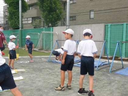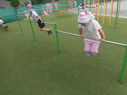 2年生は今、てつぼうあそびに夢中です。