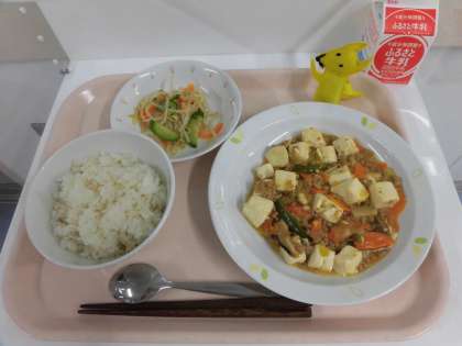 麦入りご飯・西湖豆腐・塩ナムル・牛乳