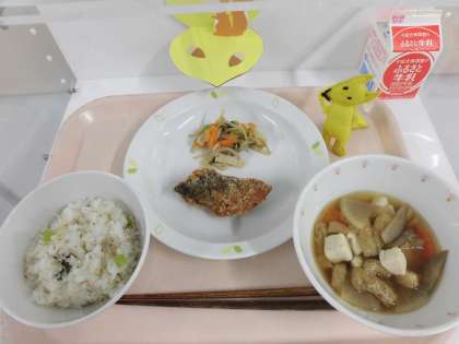11/6 本日の給食 公開日 2020/11/06 更新日 2020/11/13 給食 【献立】 いりこ菜飯・鯖の竜田揚げ・きのこ和え・けんちん汁・牛乳 今日は大根葉が足りず、かぶの葉、小松菜を混ぜて作りました。 食材の産地 閉じる 米・・・・・・・岩手県 鯖・・・・・・・ノルウェー ちりめんじゃこ ・・・・愛知県 人参・・・・・・北海道 ごぼう・長ねぎ ・・・・青森県 えりんぎ・・・・新潟県 えのき・・・・・長野県 もやし・・・・・栃木県 小松菜・・・・・埼玉県 大根・大根葉 ・・・・千葉県 生姜・・・・・・高知県 いいね(0) 学校行事