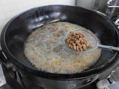 今日は、鯨の肉を下味をしっかり付けて竜田揚げにしました。