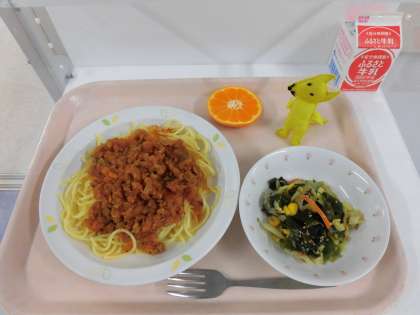 スパゲティーミートソース・海藻サラダ・花みかん・牛乳