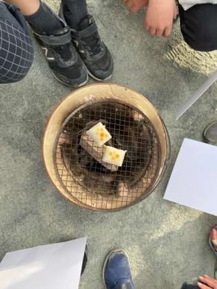 2/12 昔の人の気持ちになってみよう 公開日 2021/02/12 更新日 2021/02/13 授業 七輪体験をしてた三年生です。実際に経験することで、子どもたちの思考は深まっていきます。(実際食べられたらもっと良かったと思いますが、今回は試食は先生たちで行いました。) ・昔の人は火加減もしなくてはならないので、大変だったのでは。 ・おいしく焼けますようにと願った。 ・食べたかったけれども、美味しそうに食べてもらえ嬉しかった。 いいね(0) 学校行事 1年 2年 3年 4年 5年 6年 委員会・クラブ活動 地域連携