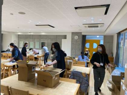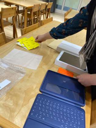 五年生、四年生、三年生分のiPadが届きました。今日は明日の配布に向け、五年生のPTAたもボラさんが荷解き、仕分け等のお手伝いをしてくださっています。ご協力にこころより感謝いたします。