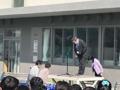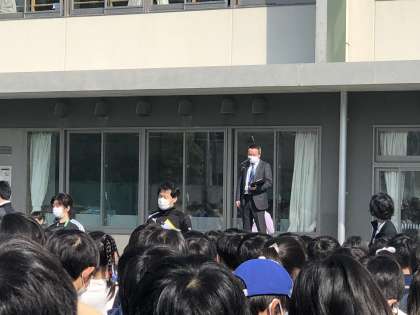 今年度初めての全校朝会