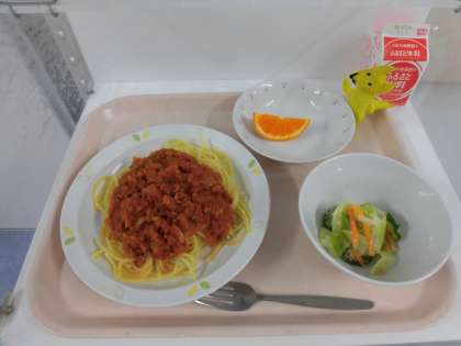 4/14 本日の給食 公開日 2021/04/14 更新日 2021/04/15 給食 【献立】 スパゲティーミートソース・ツナサラダ・カラマンダリン・牛乳 食材の産地 閉じる 豚肉・・・・・青森県 豚レバー・・・群馬県 玉ねぎ・・・・北海道 にんにく・・・青森県 きゅうり・・・群馬県 セロリ・パセリ ・・・静岡県 キャベツ・・・愛知県 人参・・・・・徳島県 生姜・・・・・熊本県 カラマンダリン ・・・・愛媛県 いいね(0) 学校行事