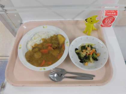 カレーライス・海藻サラダ・牛乳