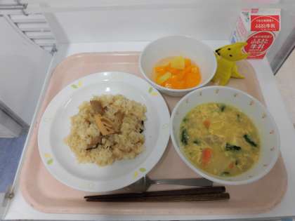 中華おこわ・中華風コーンスープ・フルーツポンチ・牛乳