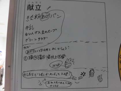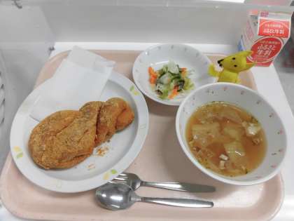 きなこ揚げパン・白いんげん豆のスープ・グリーンサラダ・牛乳