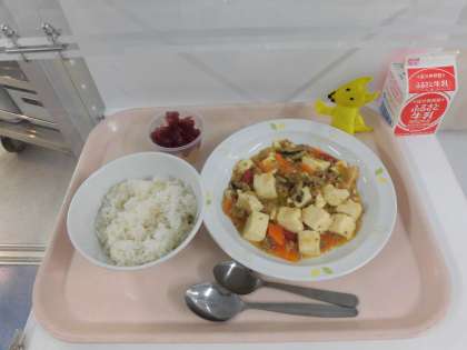 ごはん・西湖豆腐・あじさいゼリー・牛乳