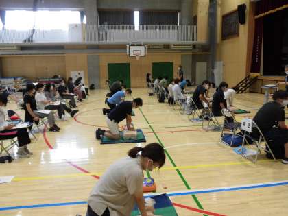 救命処置(胸骨圧迫・人工呼吸・AED)の練習を行いました。